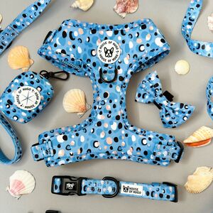 Blue Polka Dot Dog Harness Bundle Collar And Lead Set
